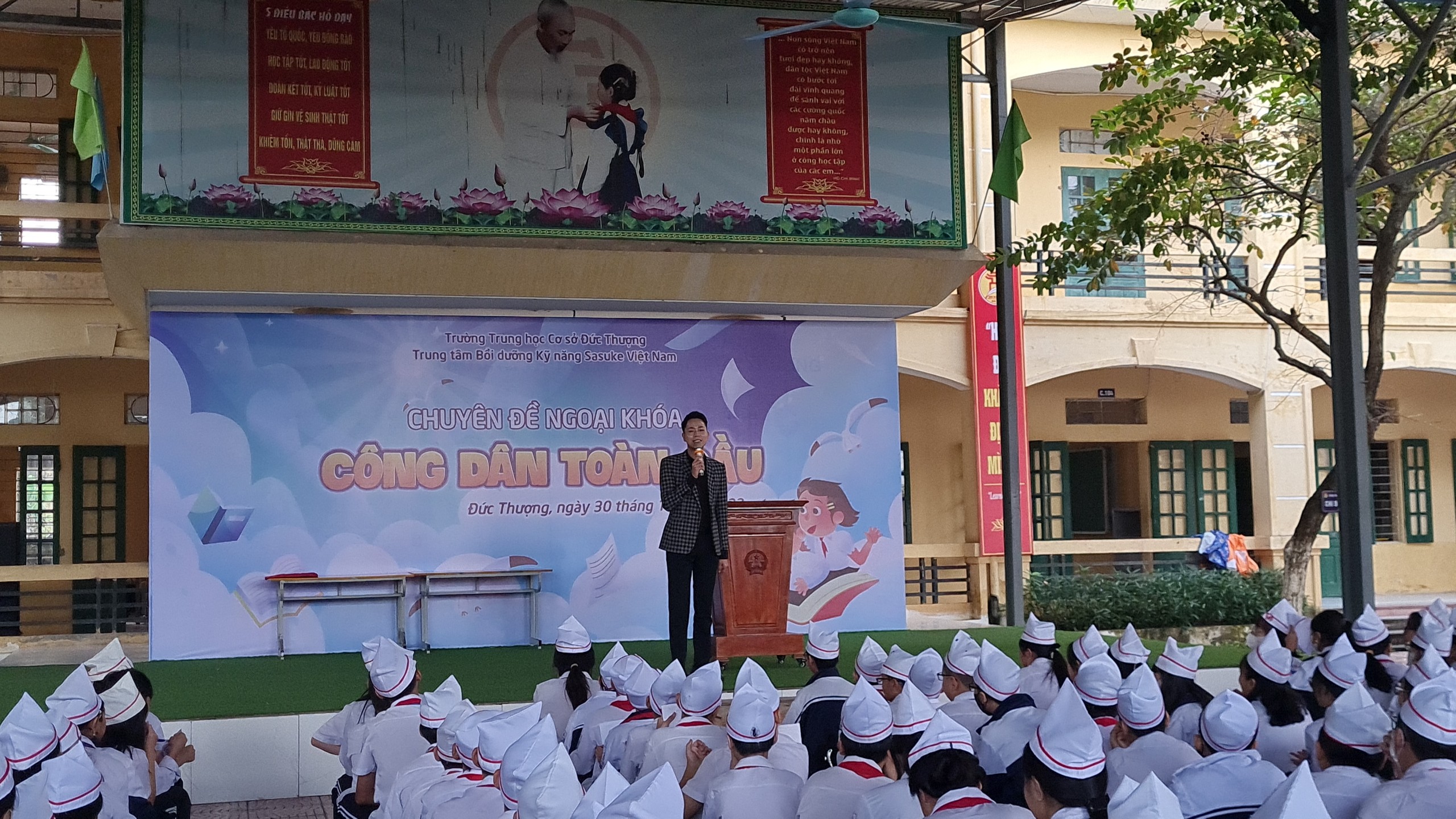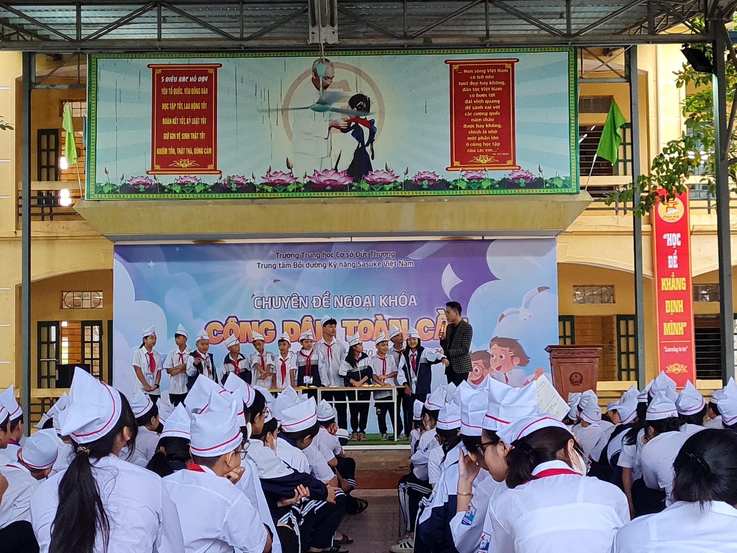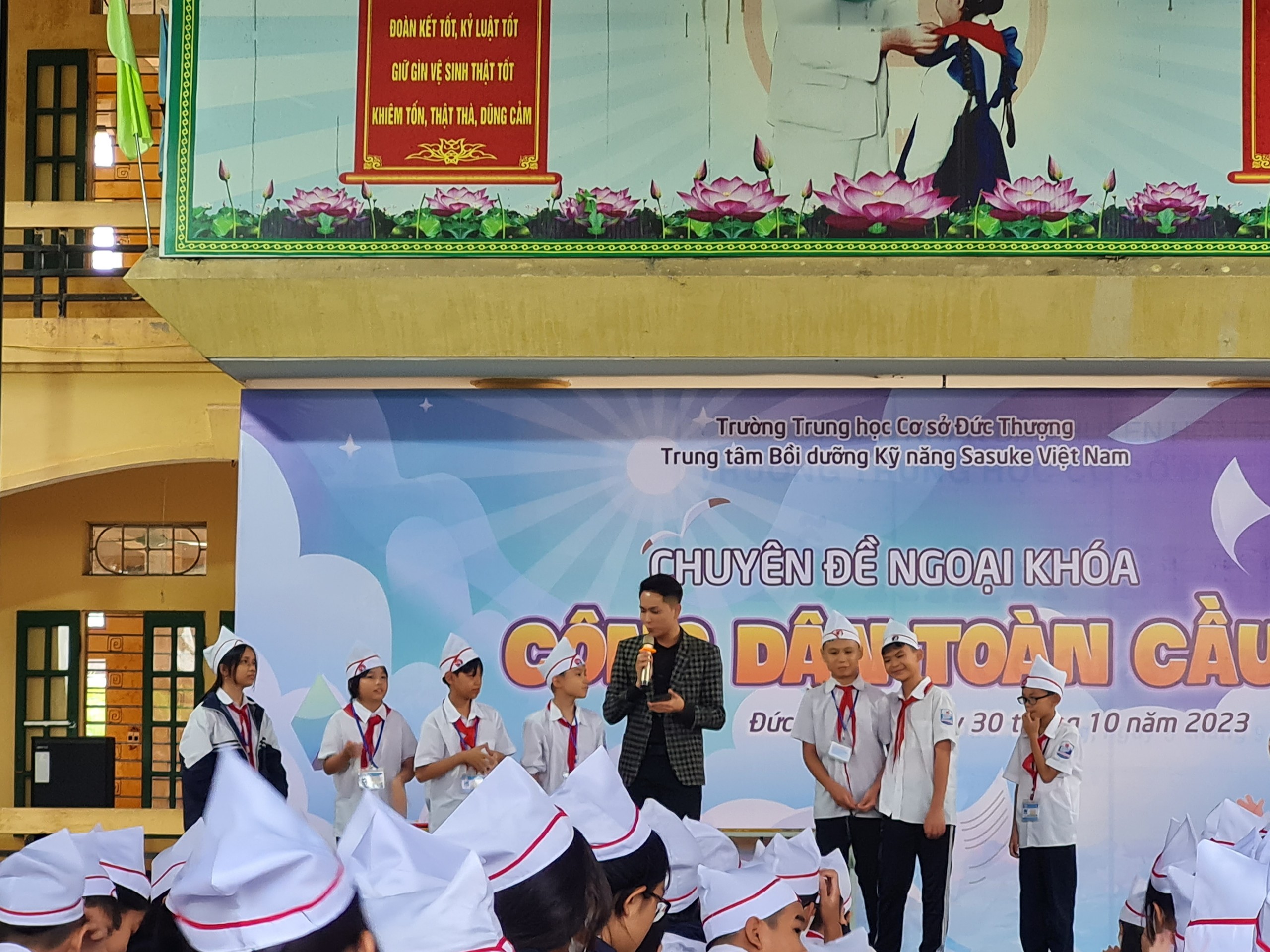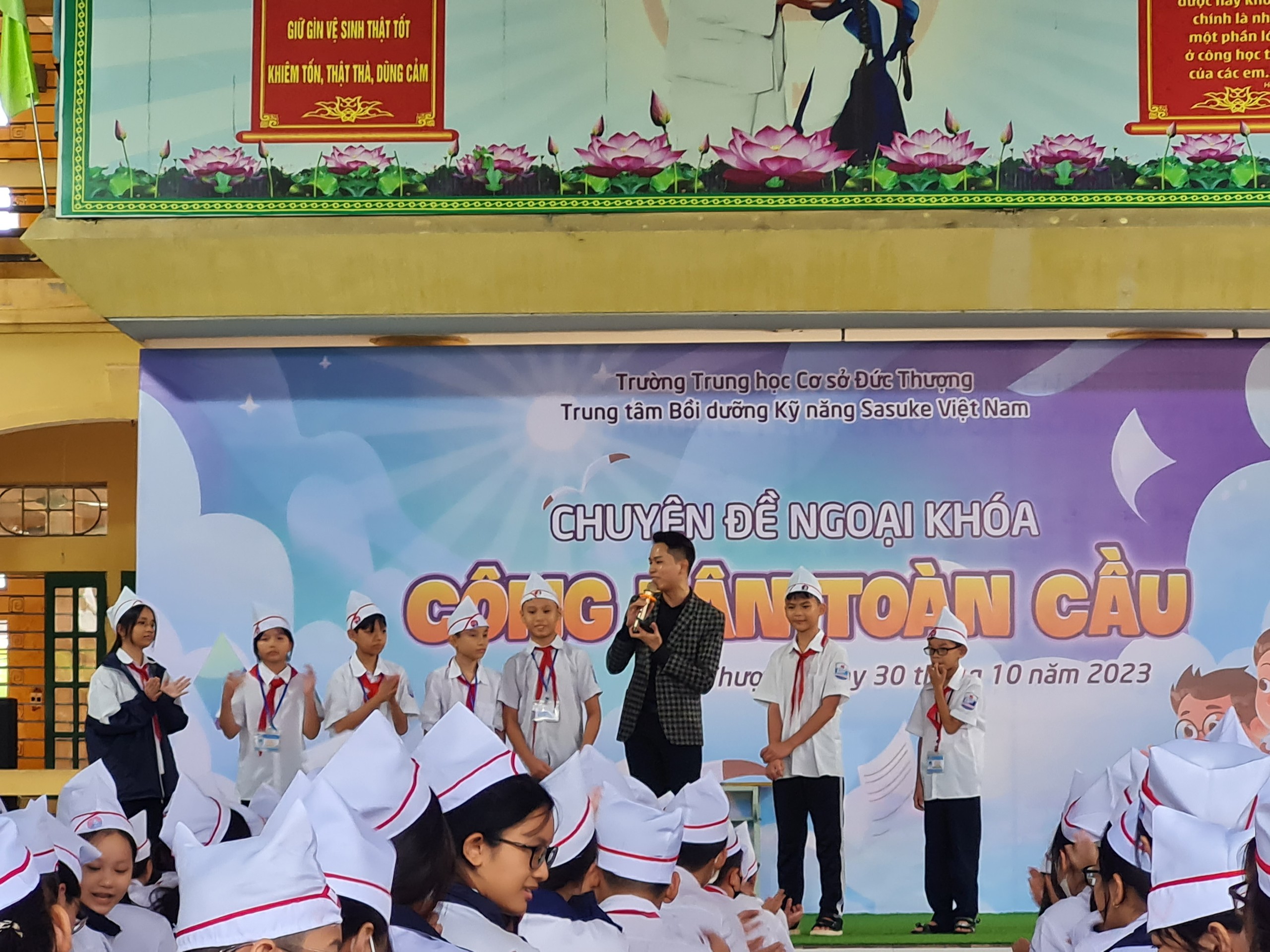Sáng ngày 30/10/2023, trường THCS Đức Thượng phối hợp với Trung tâm kỹ năng Sasuke Việt Nam tổ chức chuyên đề ngoại khóa "Công dân toàn cầu" cho học sinh toàn trường.