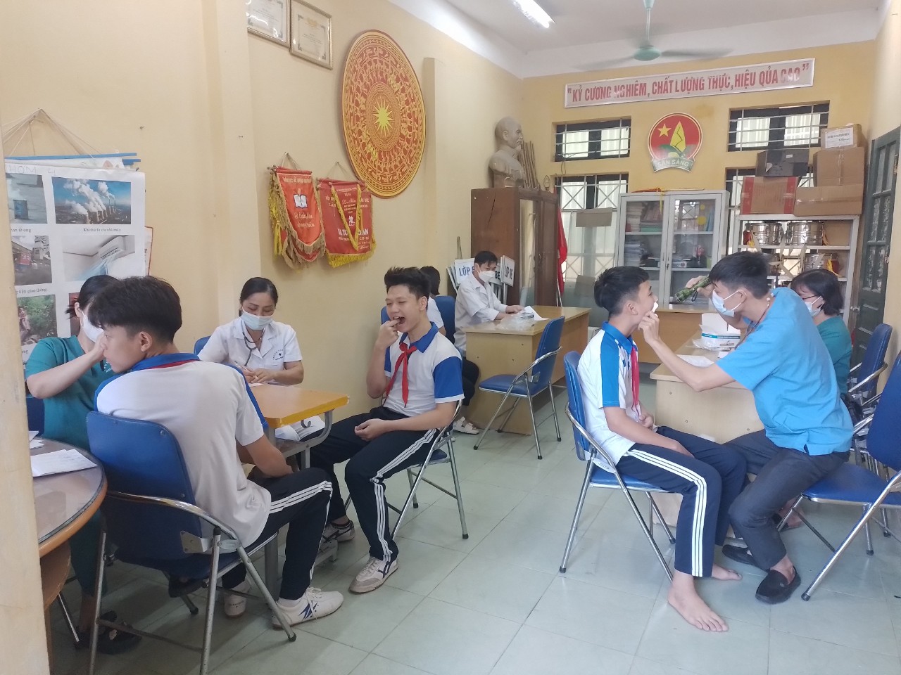 Sáng ngày 31/10/2023, Trường THCS Đức Thượng phối hợp với Trung tâm y tế huyện, Trạm y tế xã Đức Thượng tổ chức khám sức khỏe cho học sinh năm học 2023-2024.