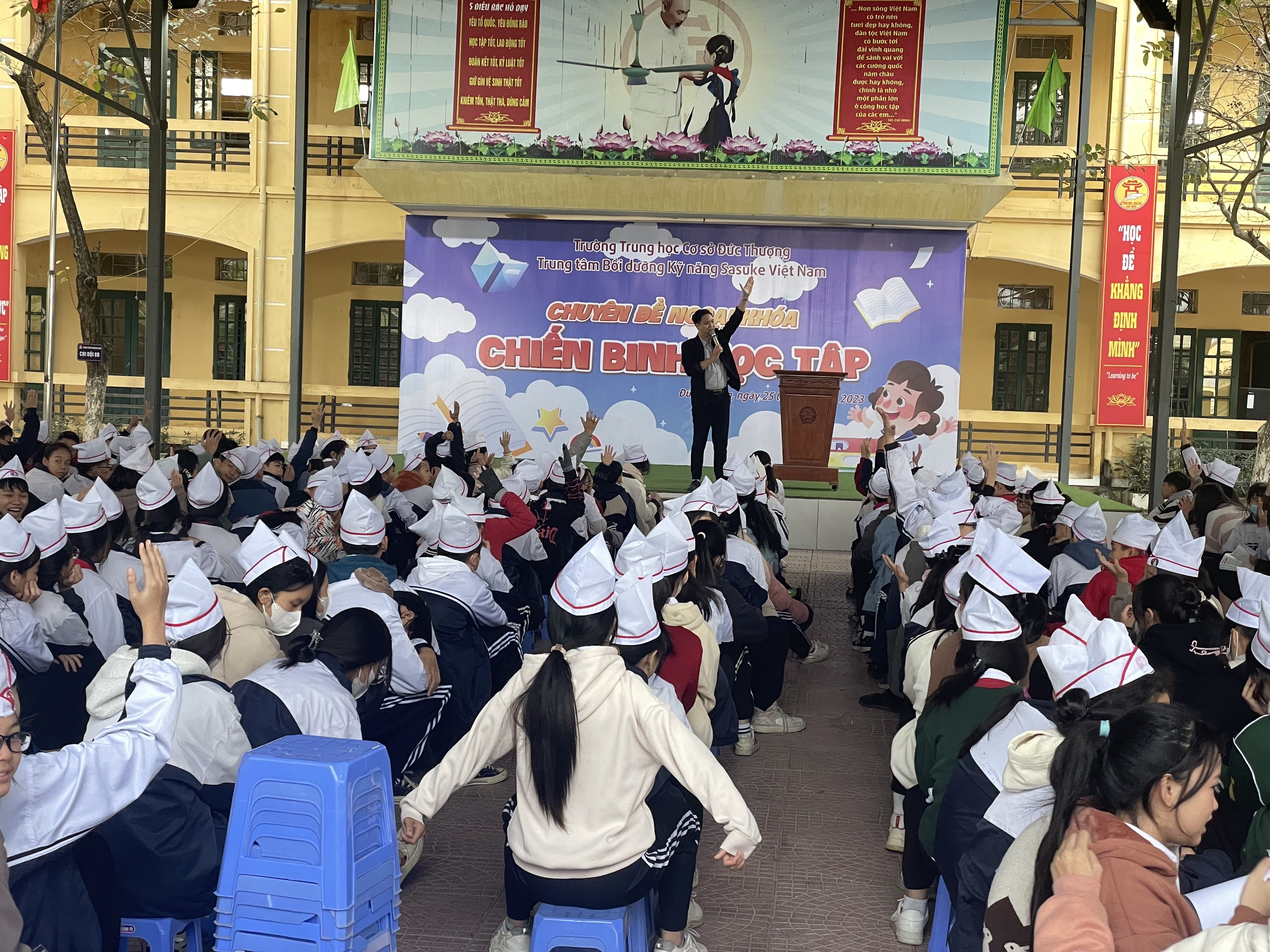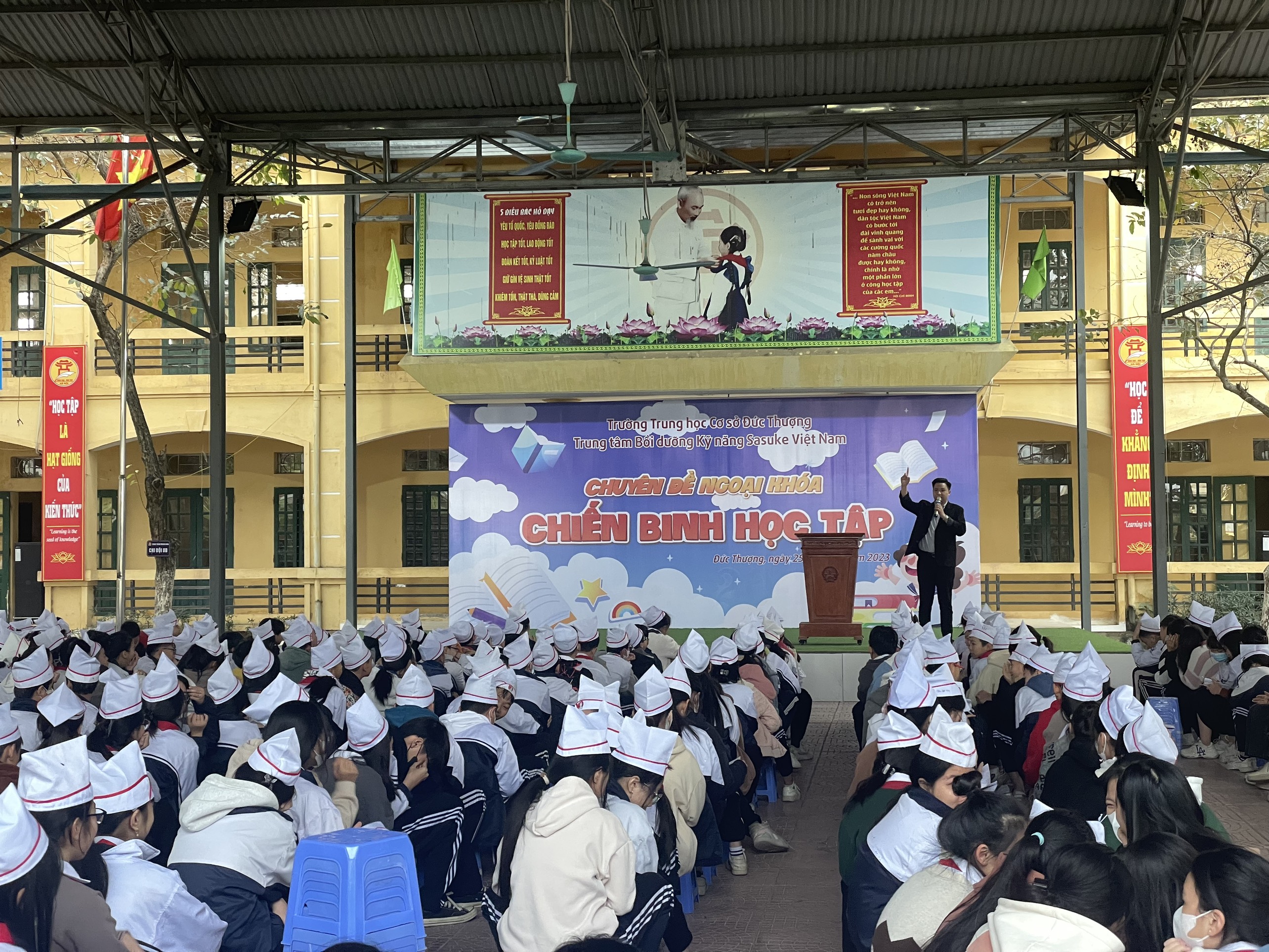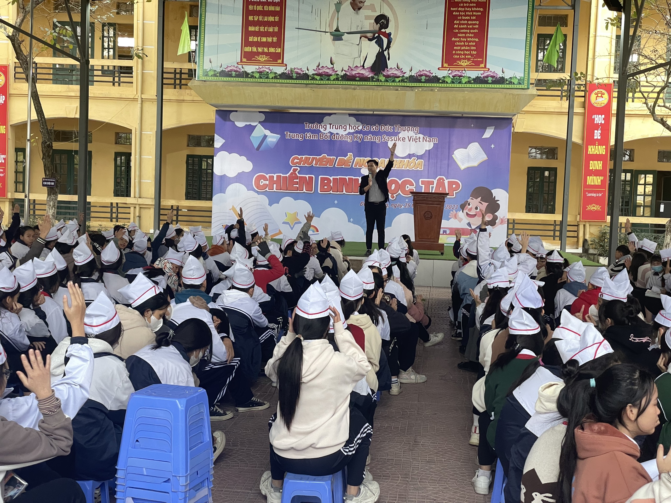Sáng ngày 25 tháng 12 năm 2023, Trường THCS Đức Thượng đã phối hợp với trung tâm kỹ năng Sasuke Việt Nam tổ chức buổi học kỹ năng sống với chủ đề " Chiến binh học tập" cho toàn bộ học sinh toàn trường.