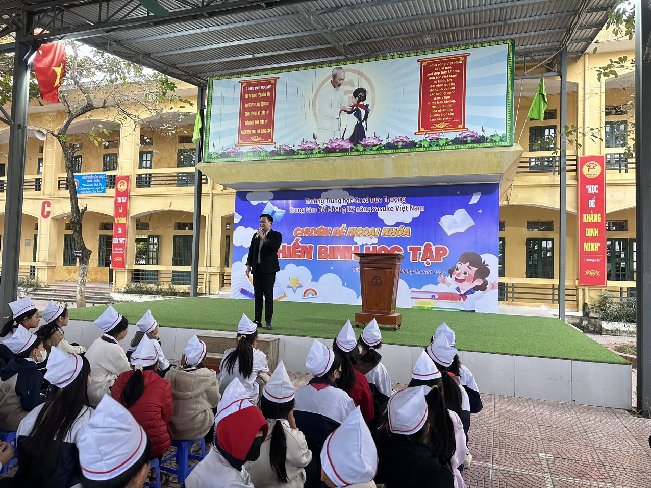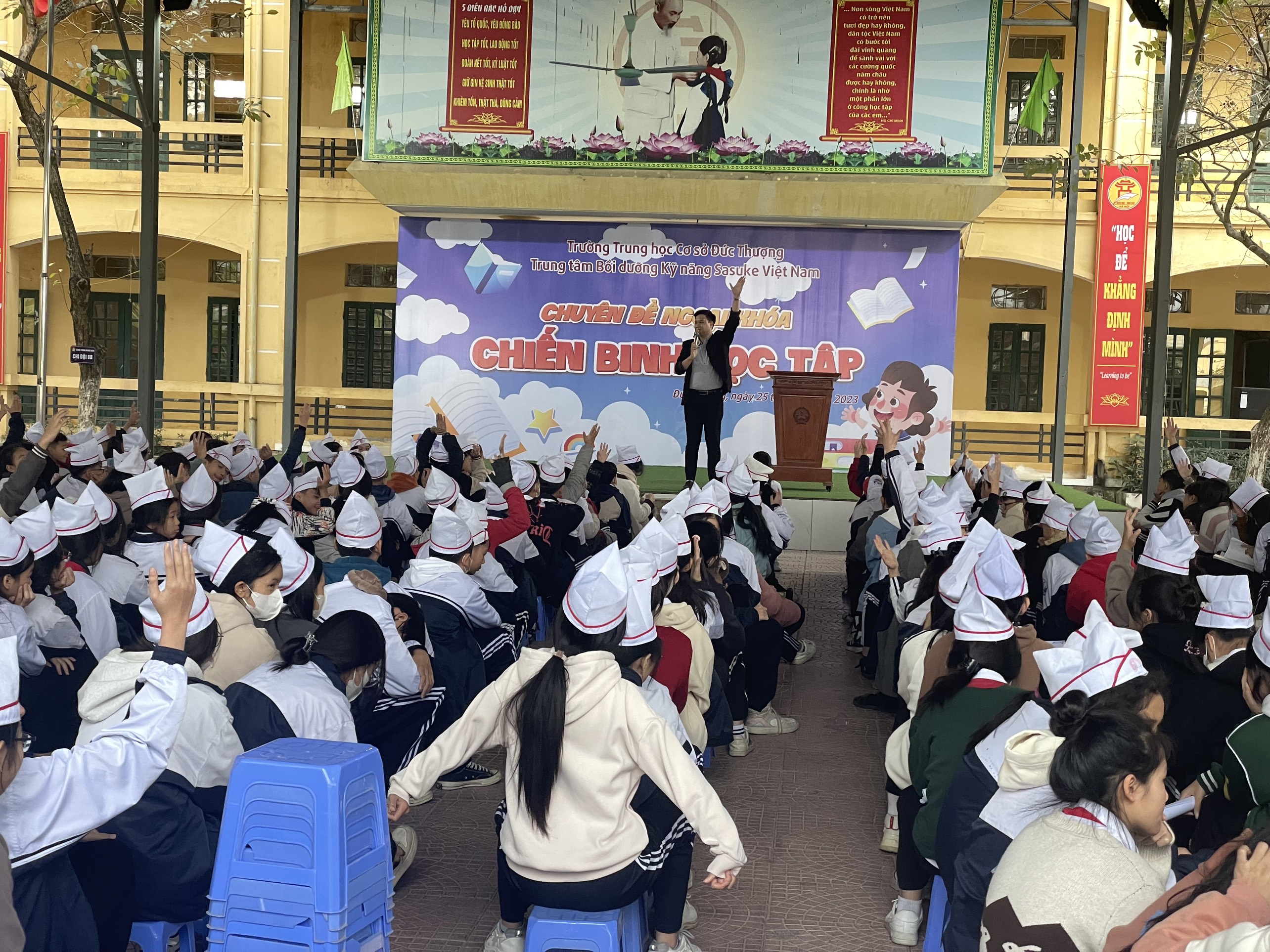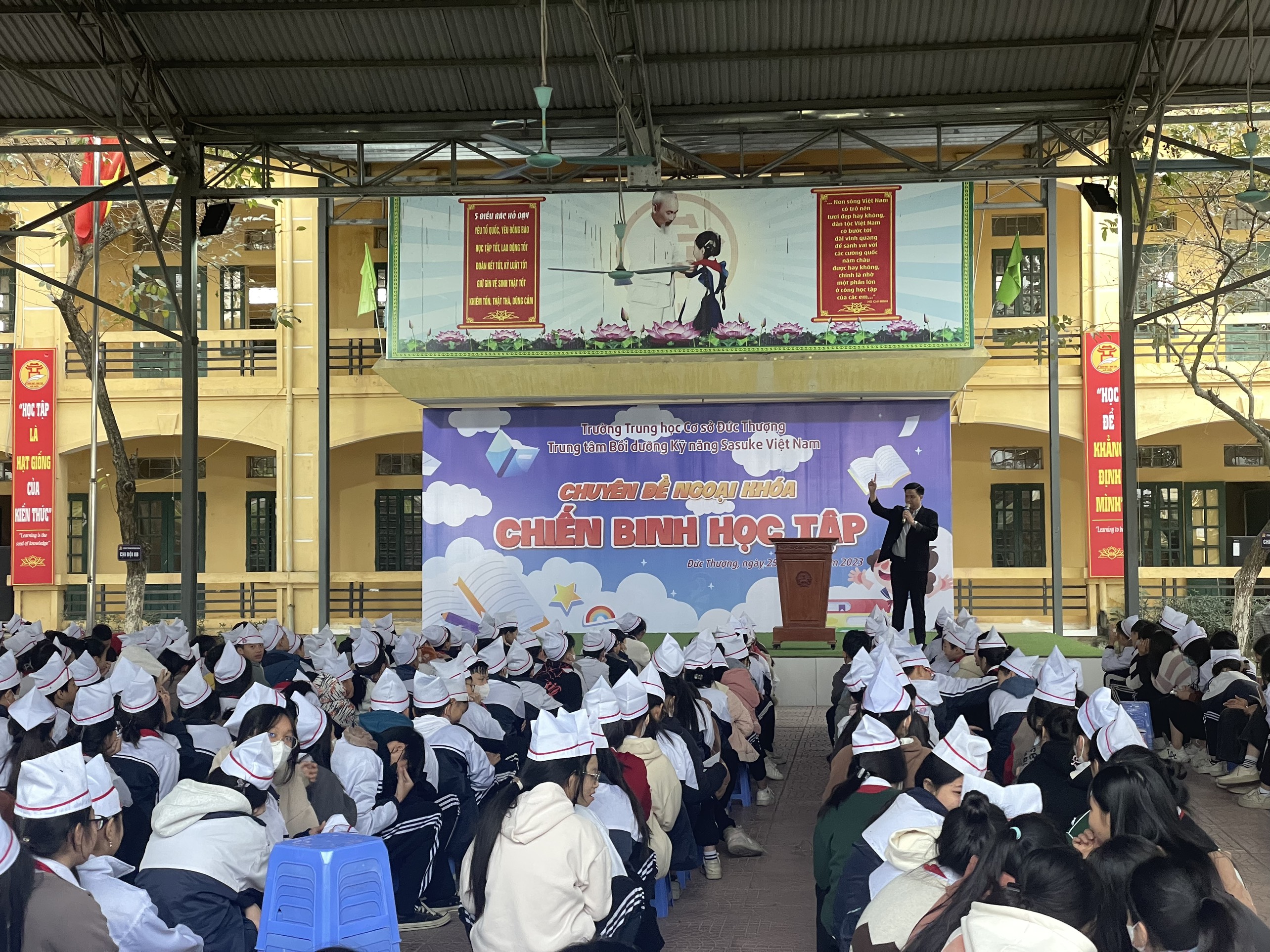 Sáng ngày 25 tháng 12 năm 2023, Trường THCS Đức Thượng đã phối hợp với trung tâm kỹ năng Sasuke Việt Nam tổ chức buổi học kỹ năng sống với chủ đề " Chiến binh học tập" cho toàn bộ học sinh toàn trường.