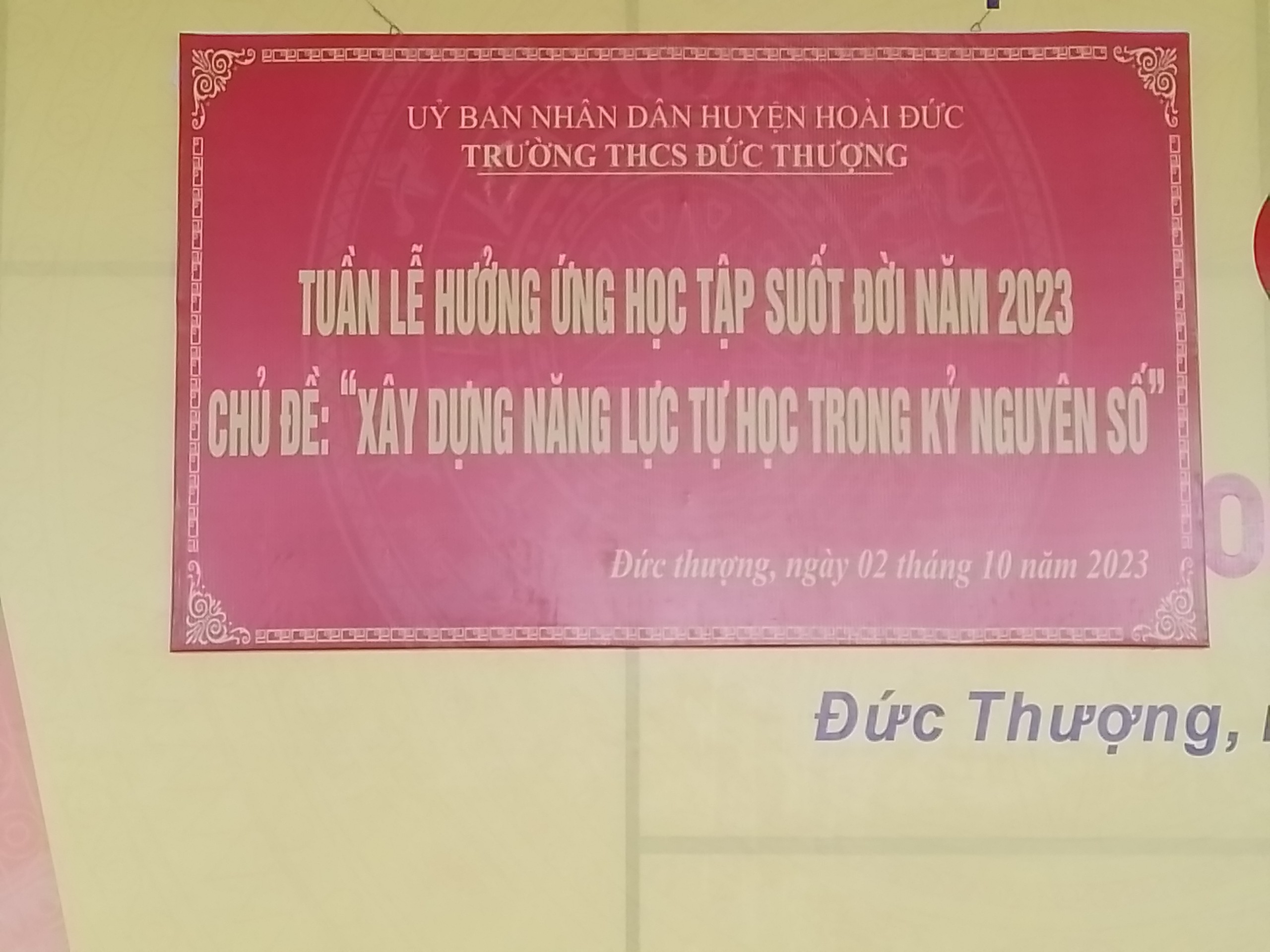 Sáng ngày 2 tháng 10 năm 2023, trường THCS Đức Thượng đã tổ chức lễ phát động hưởng ứng "Tuần lễ học tập suốt đời" năm 2023